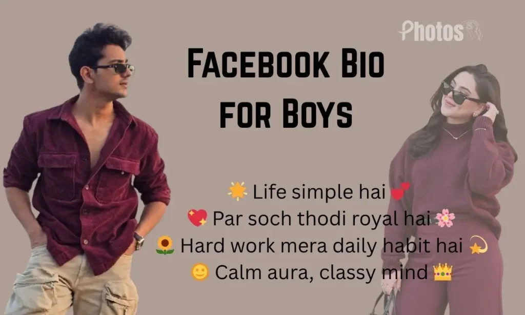 Namaste friends! If you’re someone who loves to express your attitude, emotions, and personality through your Facebook profile, then you’ve reached the right destination. Here we bring you a handpicked collection of the Best Facebook Bio for Boys 2025 — designed especially for those who want to look confident, cool, and unique on social media. Whether you prefer something classy, bold, or stylish, this guide includes every type of Facebook Bio for Boys you can imagine — from Facebook Bio for Boys attitude, stylish font bios, love-themed bios, and even Muslim Facebook bios that carry deep meaning.You’ll also find region-based options like Facebook Bio for Boys in Hindi, Bangla, and English, so every user can showcase his own identity and vibe in his favorite language. Each line here is written to match your personality — whether you’re a simple guy with a golden heart or someone who loves to flaunt his royal style. So scroll down, explore the latest Facebook Bio for Boys stylish, and pick one that defines the real you in 2025